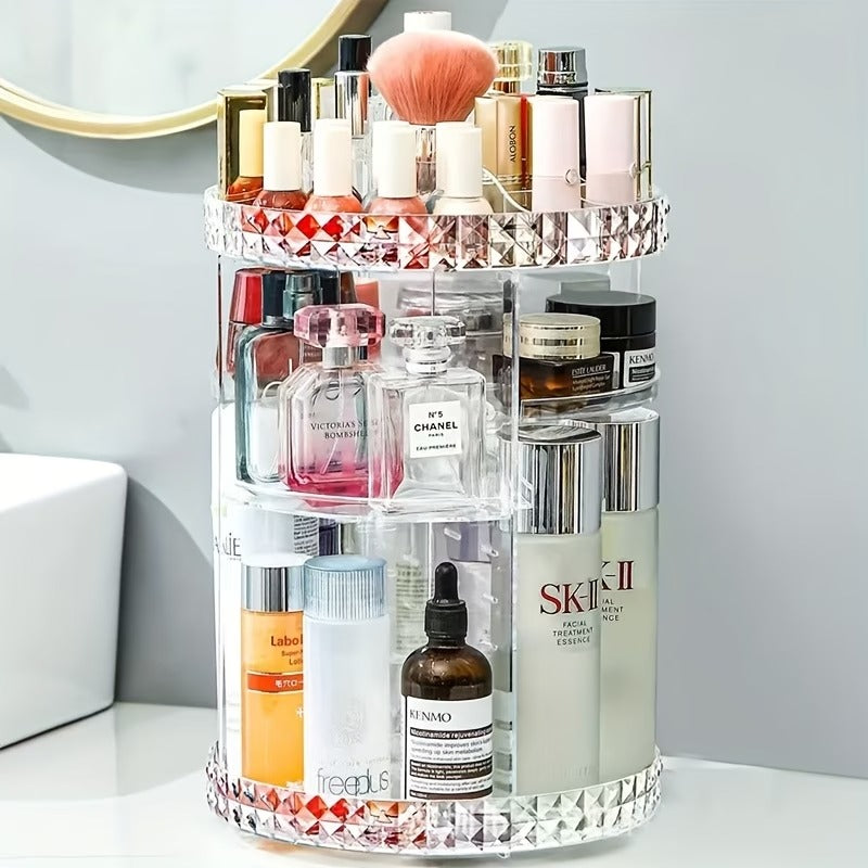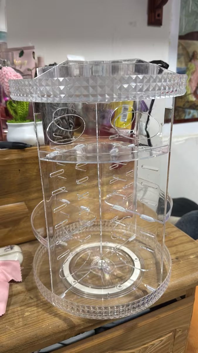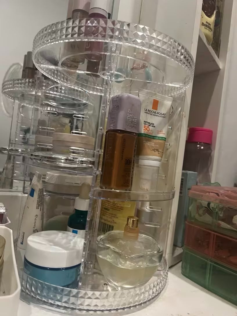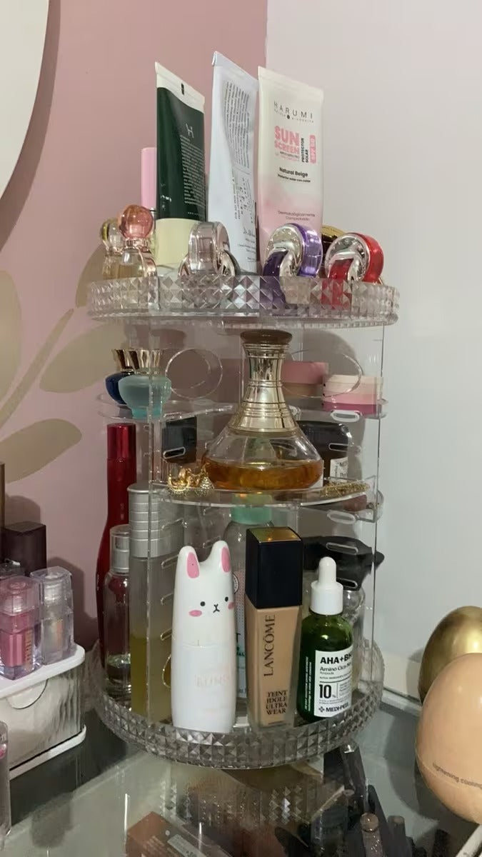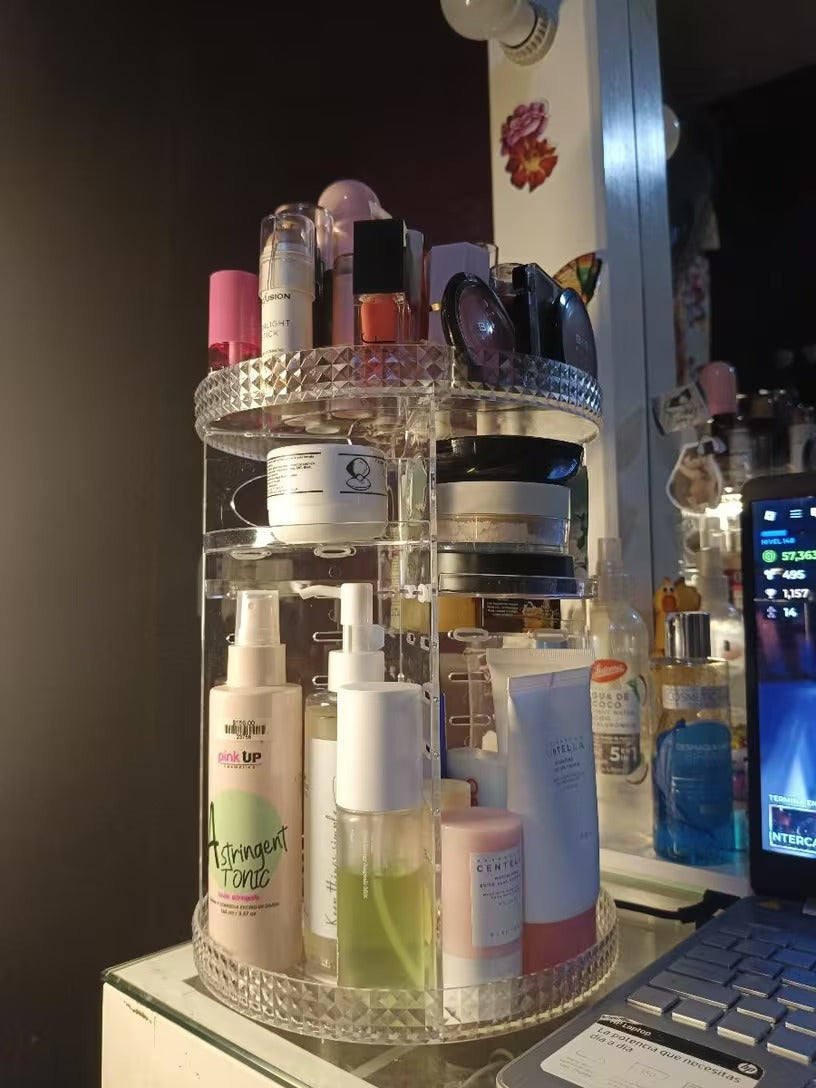 El ORGANIZADOR DE MAQUILLAJE GIRATORIO fue creado para solucionar ese problema.